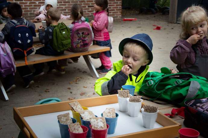 I Skovkanten får vi leveret et frokostmåltid hver dag, som lever op til Sundhedsstyrelsens anbefalinger for de forskellige aldersgrupper.
